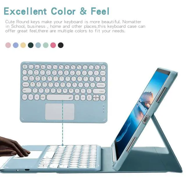 Release (models: SM-X110/X115/X117). It will NOT work for any other model device. ^^ Trackpad Keyboard Detachable Bluetooth keyboard with Touchpad transforms your tablet into a laptop in less than a second. ^^ Built-in Pencil holder Pencil Holder on the bottom can prevent the pen from being lost. Grab your Pencil effortlessly whenever you want, easily to carry your pencil with your device. **Pencil not included! **. ^^ Long standby timeBuilt-in premium Li-ion battery with energy-saving mode, 2-3 hours full charge, Standby up to 30 dayswork for at least 80 hours. ^^ Soft smooth TPU material The soft TPU back cover adopts non-slip design, Easy to install, Can support the tablet at multiple angles.