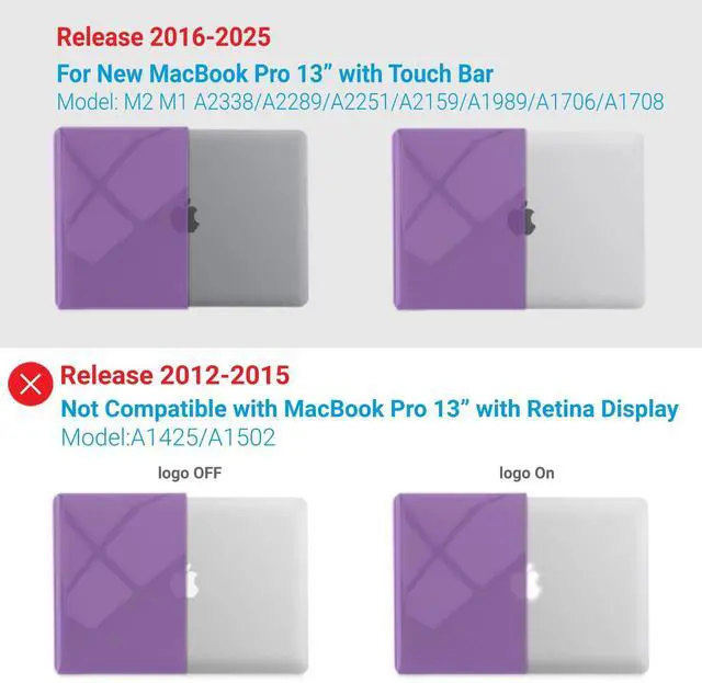 Incompatible Models: Please note that this case is not compatible with older MacBook Pro 13 inch models with Retina Display released before 2016, as well as MacBook Air 13 inch models. We kindly ask you to check the model number located at the bottom of your laptop to ensure proper fit.