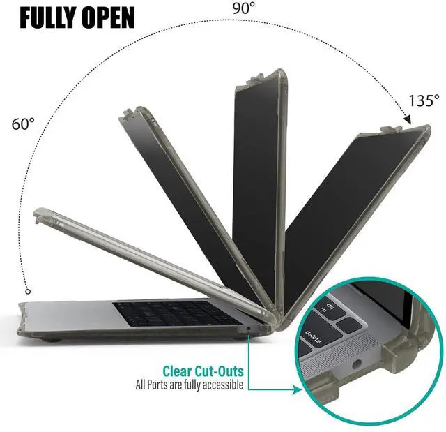 [(Fully Vented)] - The iBenzer's Hexpact protective case for Macbook air 13" with Touch ID cover has cut out vents that facilitates better heat disbursement. It also has rubberized corner stands that acts to separate the bottom of your laptop from the surface it's on. This few inches of separation further enhances airflow and heat distribution.