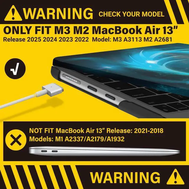 Check Your Model: This case is specifically designed for the 2025 2024 2023 2022 MacBook Air 13 inch with Touch ID, latest Model: M4 A3240 / M3 A3113 / M2 A2681.