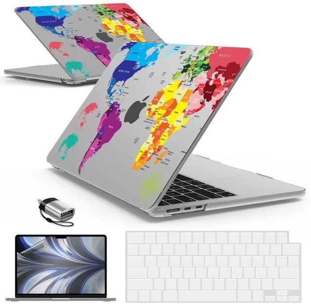 IBENZER Compatible with 2025 2024 2023 2022 MacBook Air 13 inch Case M4 A3240 M3 A3113 M2 A2681, Hardshell Case & KeyboardCover & ScreenFilm & Type-C for Mac Air 13.6, Map, AT13-KK-MAP+2TC