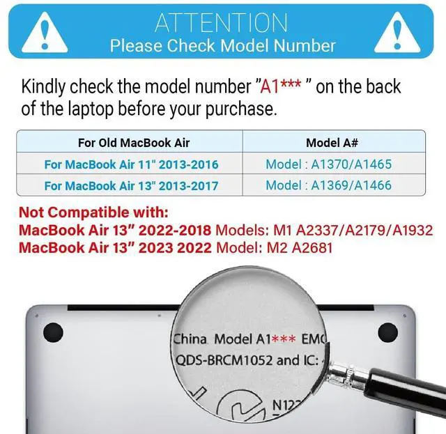 Check Your Model: This case is specifically designed for the Older Version MacBook Air 13 inch released in 2017 2016 2015 2014 2013 2012;