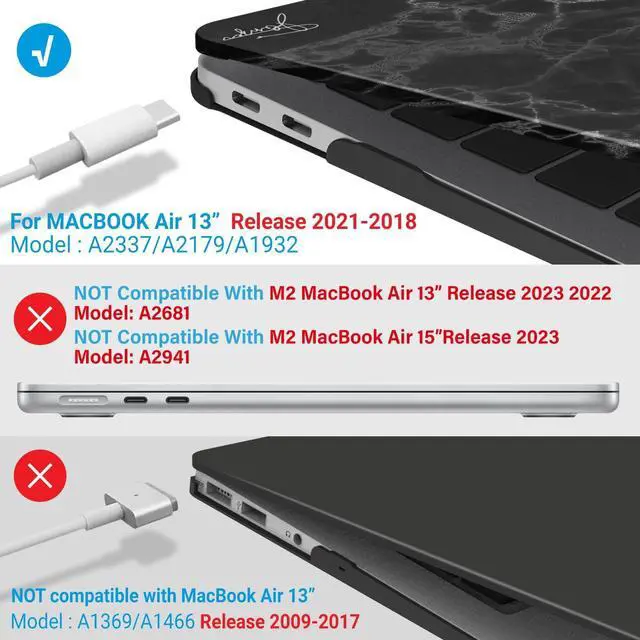 Check Your Model: This case is specifically designed for the MacBook Air 13 inch 2022 2021 2020 2019 2018 Release with Touch ID;