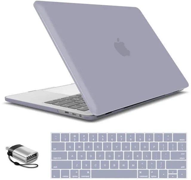 IBENZER Compatible with MacBook Pro 15 Inch Case 2019 2018 2017 2016 A1990 A1707, Hard Shell Case with Keyboard Cover & Type C Adapter for Mac Pro 15 Touch Bar, Lavender Gray, T15LVGY+1TC