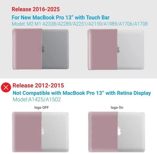 Check Your Model: Designed to fit 2025-2016 M2 M1 MacBook Pro 13 inch models, including M2 M1 A2338/A2289/A2251/A2159/A1989/A1706/A1708.