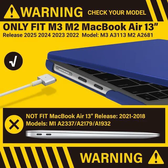 • Check Your Model: This case is specifically designed for the 2025 2024 2023 2022 MacBook Air 13 inch with Touch ID, latest Model: M4 A3240 / M3 A3113 / M2 A2681.