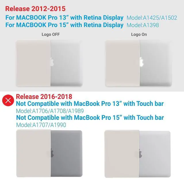 Compatibility- For Macbook Pro 15 inch with Retina Display Model A1398 MC975LL/A or MC976LL/A or ME293LL/A or ME294LL/A ^^ Lightweight & Sturdy Compatible with Macbook Pro 15 Inch Case A1398 -Made of sturdy lightweight plastic, our protective case for MacBook Pro 15 Inch protects your Macbook Pro 15 from scratches and dings. At only 10 oz, it doesn't add any noticeable weight to your MacBook 15 Pro. ^^ Easy Installation & Removal Case For Macbook Pro 15 Case A1398 - Our protective case has micro clips that securely fastens to your MacBook, and snaps off with easy when needed.