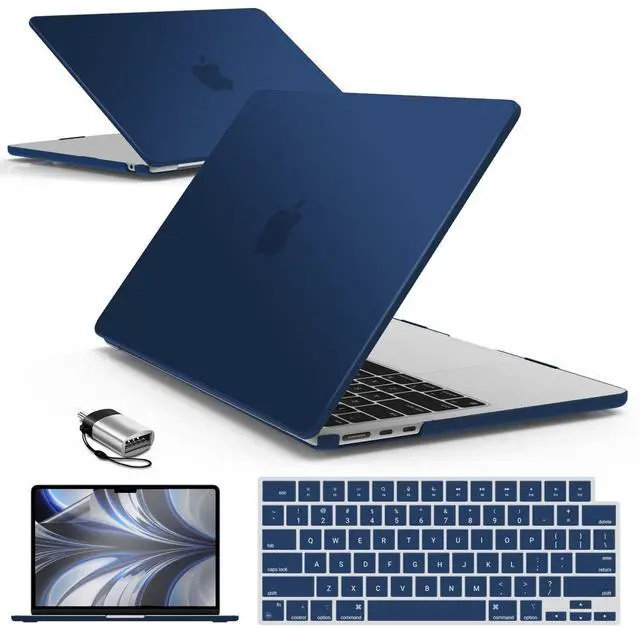 IBENZER Compatible with 2025 2024 2023 2022 MacBook Air 13 inch Case M4 A3240 M3 A3113 M2 A2681, Hardshell Case & KeyboardCover & ScreenFilm & Type-C for Mac Air 13.6, Navy Blue, AT13-KK-NVBL+2TC