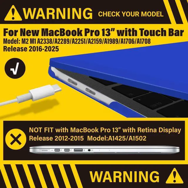 Check Your Model: Designed to fit 2025-2016 M2 M1 MacBook Pro 13 inch models, including M2 M1 A2338/A2289/A2251/A2159/A1989/A1706/A1708.