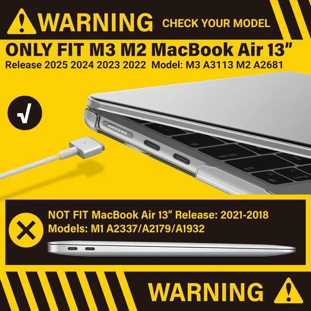 • Check Your Model: This case is specifically designed for the 2025 2024 2023 2022 MacBook Air 13 inch with Touch ID, latest Model: M4 A3240 / M3 A3113 / M2 A2681.