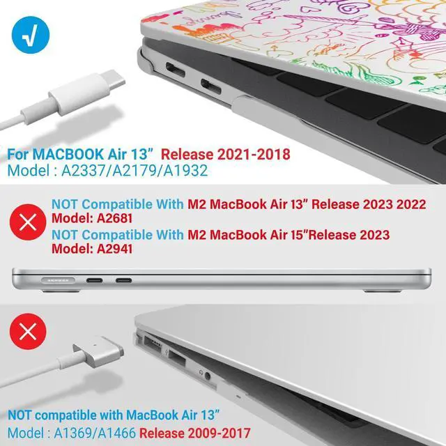 Check Your Model: This case is specifically designed for the MacBook Air 13 inch 2022 2021 2020 2019 2018 Release with Touch ID;