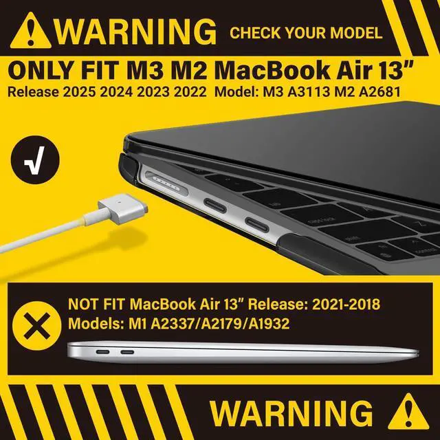 • Check Your Model: This case is specifically designed for the 2025 2024 2023 2022 MacBook Air 13 inch with Touch ID, latest Model: M4 A3240 / M3 A3113 / M2 A2681.