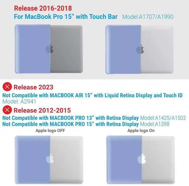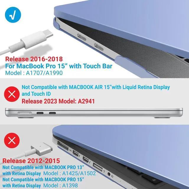 • Incompatible Models: This case is not compatible with the New M2 MacBook Air 15" (model A2941) released in 2023 and MacBook Pro 15" with Retina Display (models A1398) released in 2015, 2014, 2013, and 2012. Please check the model number located at the bottom of your laptop before making your purchase decision for the perfect fit.