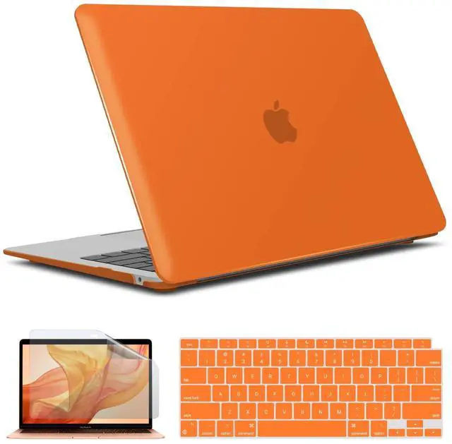 IBENZER Compatible with New MacBook Air 13 inch case 2022 2021 2020 M1 A2337 A2179 A1932, Hard Shell Case&Keyboard Cover&Screen Film for Mac Air 13 with Touch ID (2018-2022), Orange, AT13OR+2