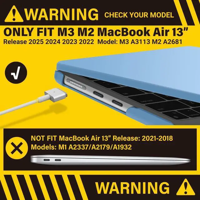 • Check Your Model: This case is specifically designed for the 2025 2024 2023 2022 MacBook Air 13 inch with Touch ID, latest Model: M4 A3240 / M3 A3113 / M2 A2681.