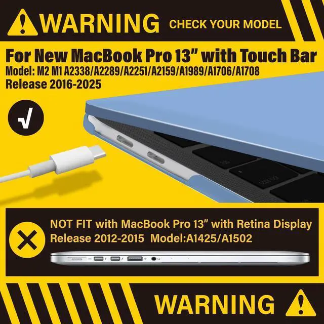 Check Your Model: Designed to fit 2025-2016 M2 M1 MacBook Pro 13 inch models, including M2 M1 A2338/A2289/A2251/A2159/A1989/A1706/A1708.