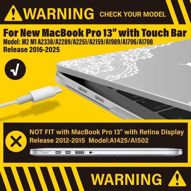 Check Your Model: Designed to fit 2025-2016 M2 M1 MacBook Pro 13 inch models, including M2 M1 A2338/A2289/A2251/A2159/A1989/A1706/A1708.