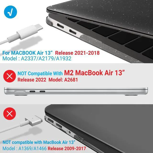 • Incompatible Models: Please note that this case does not fit the 2022 M2 MacBook Air 13 Inch; Model: A2681 and Older MacBook Air 13 Released BEFORE 2018; Models: A1466/A1369. Make sure to check the model number at the bottom of your laptop A****.