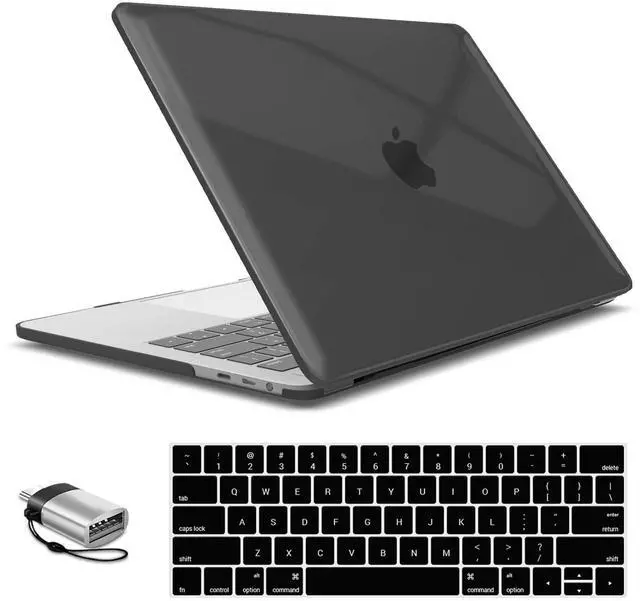 IBENZER Compatible with MacBook Pro 15 Inch Case 2019 2018 2017 2016 A1990 A1707, Hard Shell Case with Keyboard Cover & Type C Adapter for Mac Pro 15 Touch Bar, Crystal Black, T15CYBK+1TC