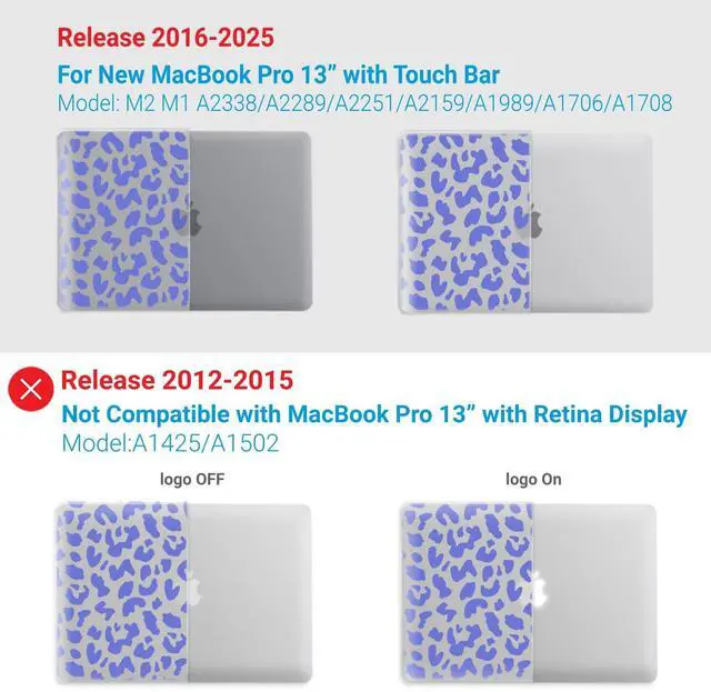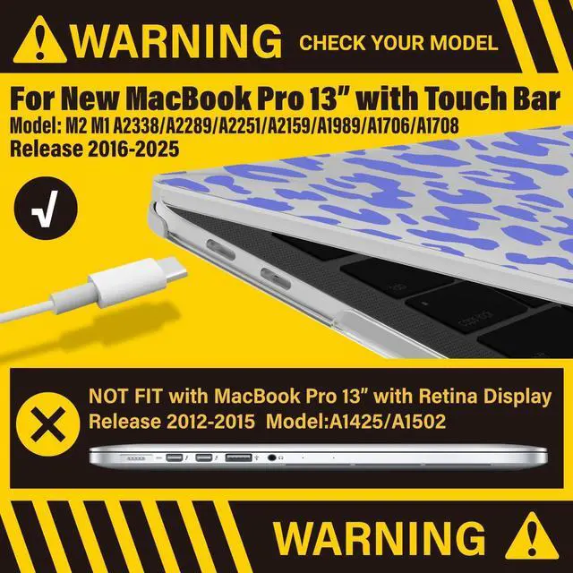 Check Your Model: Designed to fit 2025-2016 M2 M1 MacBook Pro 13 inch models, including M2 M1 A2338/A2289/A2251/A2159/A1989/A1706/A1708.