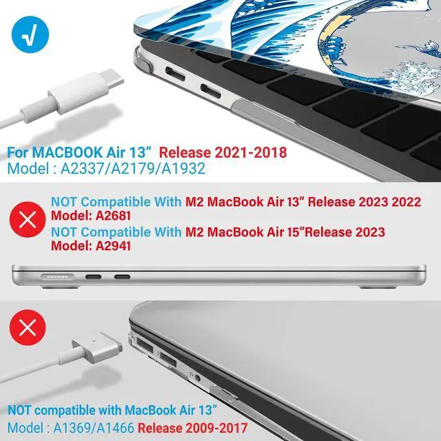 • Check Your Model: This case is specifically designed for the MacBook Air 13 inch 2022 2021 2020 2019 2018 Release with Touch ID; Models: M1 A2337 A2179 A1932 MVFH2LL/A, MVFM2LL/A, MVFK2LL/A, MVFJ2LL/A, MVFN2LL/A, MVFL2LL/A, MREE2LL/A, MREC2LL/A, MRE82LL/A, MREA2LL/A, MREF2LL/A, MRE92LL/A.