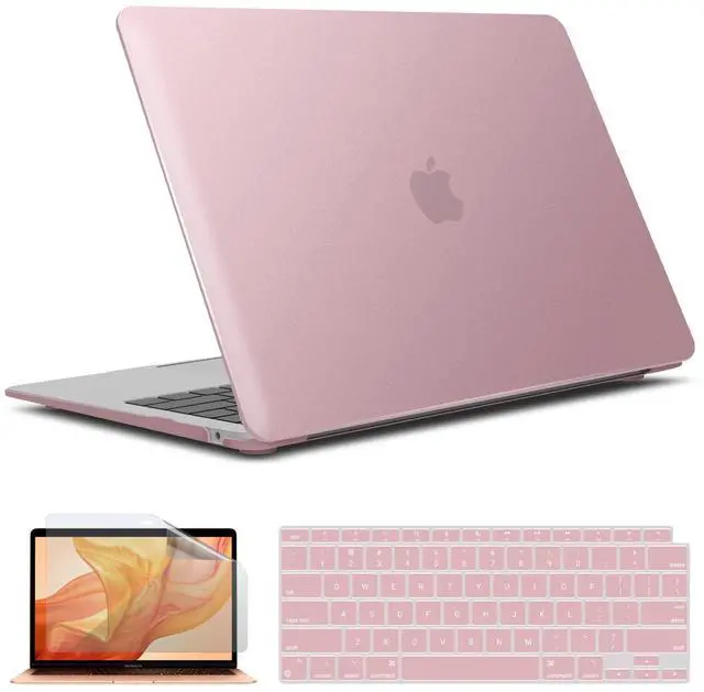 IBENZER Compatible with New MacBook Air 13 inch case 2022 2021 2020 M1 A2337 A2179 A1932, Hard Shell Case&Keyboard Cover&Screen Film for Mac Air 13 with Touch ID (2018-2022), Rose Gold, AT13MPK+2