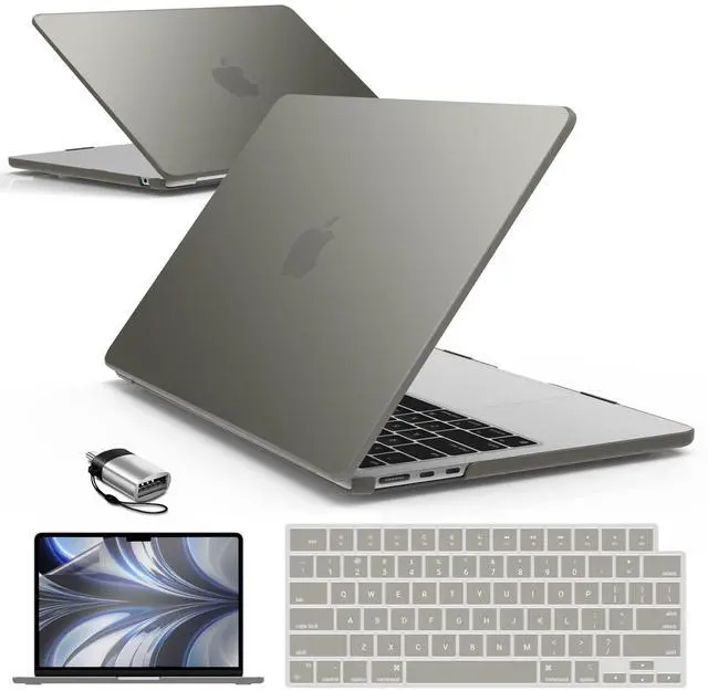 IBENZER Compatible with 2025 2024 2023 2022 MacBook Air 13 inch Case M4 A3240 M3 A3113 M2 A2681, Hardshell Case & KeyboardCover & ScreenFilm & Type-C for Mac Air 13.6, Gray, AT13-KK-GY+2TC