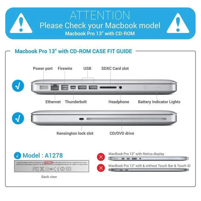 Check Your Model: Designed to fit Macbook Pro 13 inch with CD-ROM, released in June