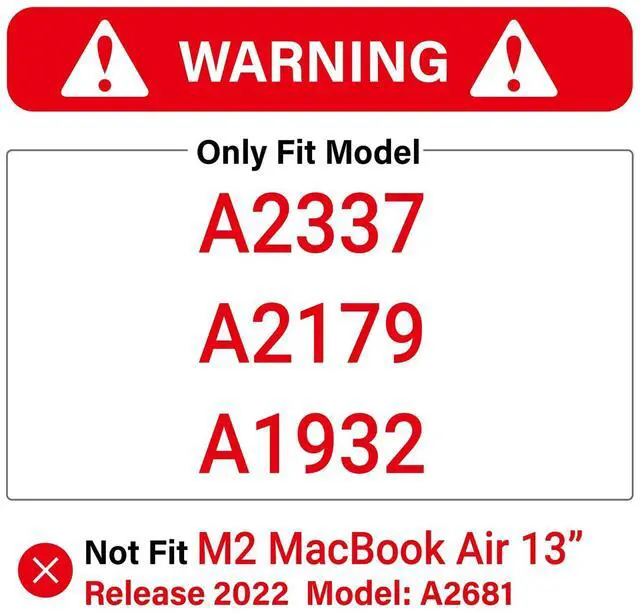Check Your Model: This case is specifically designed for the MacBook Air 13 inch 2022 2021 2020 2019 2018 Release with Touch ID;