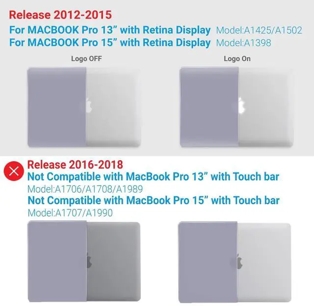 Compatibility- For Macbook Pro 15 inch with Retina Display Model A1398 MC975LL/A or MC976LL/A or ME293LL/A or ME294LL/A ^^ Lightweight & Sturdy Compatible with Macbook Pro 15 Inch Case A1398 -Made of sturdy lightweight plastic, our protective case for MacBook Pro 15 Inch protects your Macbook Pro 15 from scratches and dings. At only 10 oz, it doesn't add any noticeable weight to your MacBook 15 Pro. ^^ Easy Installation & Removal Case For Macbook Pro 15 Case A1398 - Our protective case has micro clips that securely fastens to your MacBook, and snaps off with easy when needed.