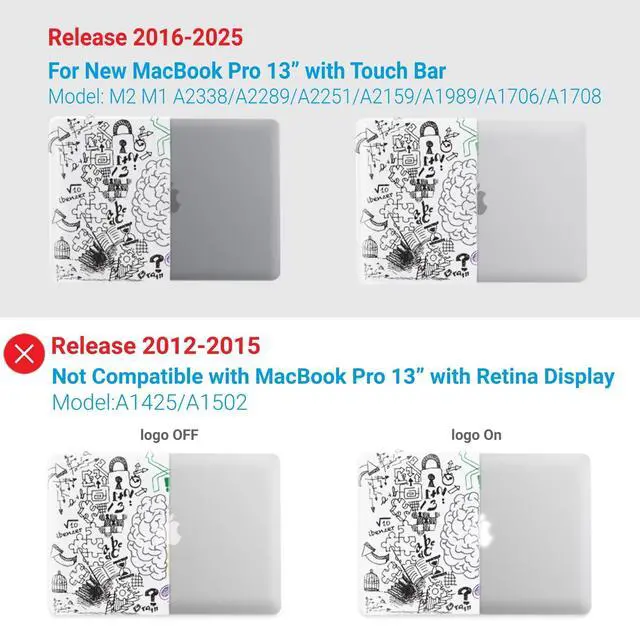 Check Your Model: Designed to fit 2025-2016 M2 M1 MacBook Pro 13 inch models, including M2 M1 A2338/A2289/A2251/A2159/A1989/A1706/A1708.