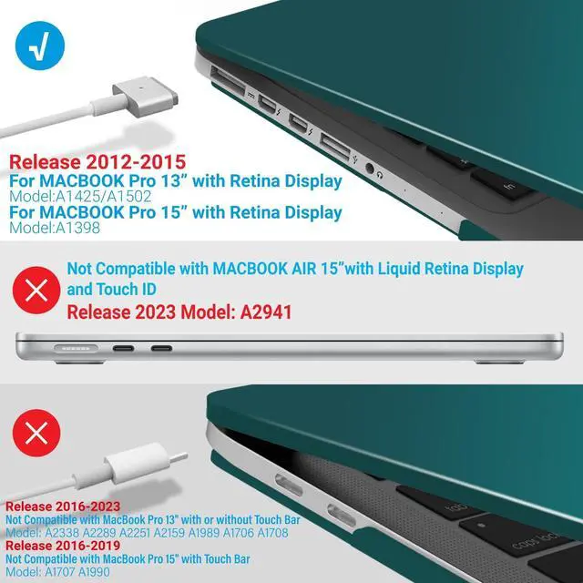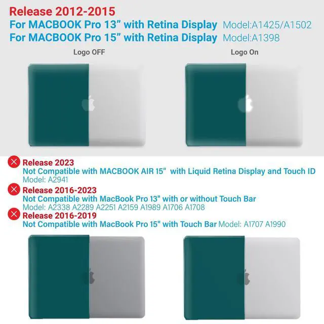 Compatibility- For Macbook Pro 15 inch with Retina Display Model A1398 MC975LL/A or MC976LL/A or ME293LL/A or ME294LL/A ^^ Lightweight & Sturdy Compatible with Macbook Pro 15 Inch Case A1398 -Made of sturdy lightweight plastic, our protective case for MacBook Pro 15 Inch protects your Macbook Pro 15 from scratches and dings. At only 10 oz, it doesn't add any noticeable weight to your MacBook 15 Pro. ^^ Easy Installation & Removal Case For Macbook Pro 15 Case A1398 - Our protective case has micro clips that securely fastens to your MacBook, and snaps off with easy when needed.