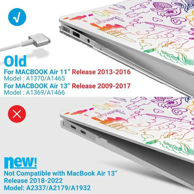 • Check Your Model: This case is specifically designed for the Older Version MacBook Air 13 inch released in 2017 2016 2015 2014 2013 2012; Models: A1466 A1369; MQD32LL/A, MQD42LL/A, MMGF2LL/A, MMGG2LL/A, MJVE2LL/A, MJVG2LL/A, MD760LL/B, MD760LL/A, MD761LL/A, MD231LL/A, MD232LL/A, MC503LL/A, MC504LL/A, MC965LL/A, MC966LL/A.