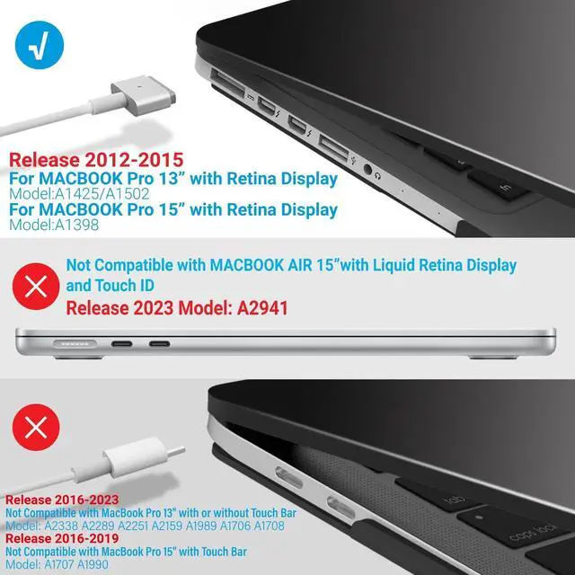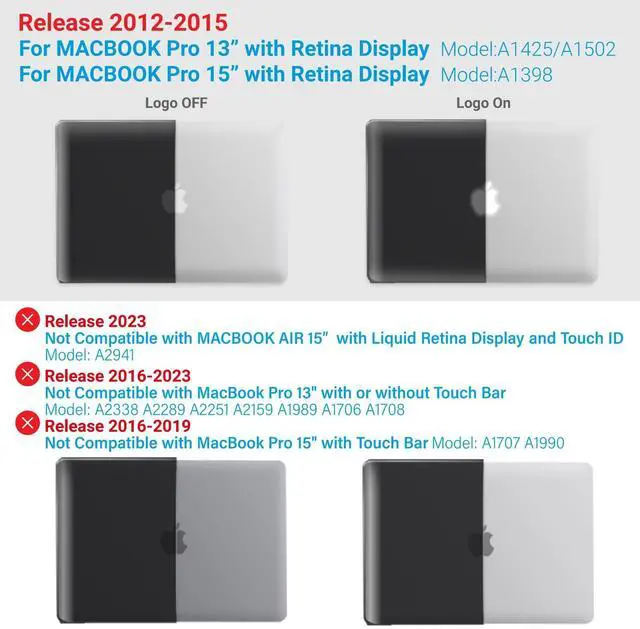 Compatibility- For Macbook Pro 15 inch with Retina Display Model A1398 MC975LL/A or MC976LL/A or ME293LL/A or ME294LL/A ^^ Lightweight & Sturdy Compatible with Macbook Pro 15 Inch Case A1398 -Made of sturdy lightweight plastic, our protective case for MacBook Pro 15 Inch protects your Macbook Pro 15 from scratches and dings. At only 10 oz, it doesn't add any noticeable weight to your MacBook 15 Pro. ^^ Easy Installation & Removal Case For Macbook Pro 15 Case A1398 - Our protective case has micro clips that securely fastens to your MacBook, and snaps off with easy when needed.