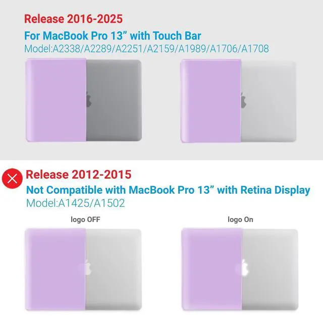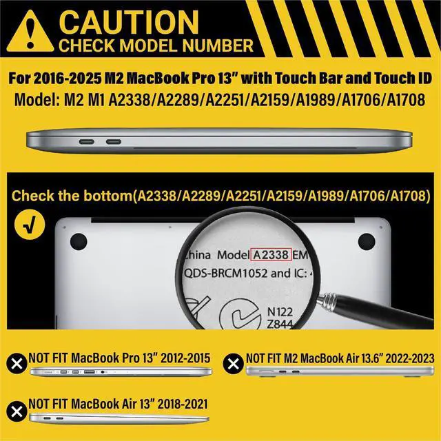 Check Your Model: Designed to fit 2025-2016 M2 M1 MacBook Pro 13 inch models, including M2 M1 A2338/A2289/A2251/A2159/A1989/A1706/A1708.