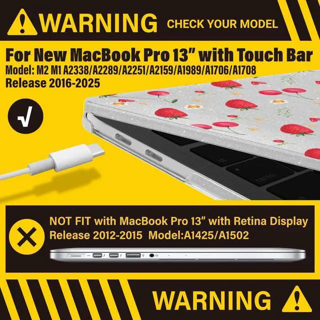 Check Your Model: Designed to fit 2025-2016 M2 M1 MacBook Pro 13 inch models, including M2 M1 A2338/A2289/A2251/A2159/A1989/A1706/A1708.