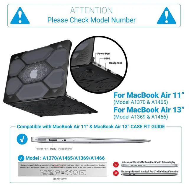 Tough Honeycomb Design Compatible with Macbook Air 11 Inch Case - iBenzers Hexpact protective case is dual-layer full-body rugged and built to withstand the heaviest of drops. Made out of TPU and polycarbonate, it dissipates the impact of the fall throughout its honeycomb body to lessen the impact on your laptop. ^^ Unhindered Access For Macbook Air 11 - Compatible with Macbook Air 11 Inch - hard case design comes with cut-out sections for easy access to all ports, battery check button, Type C, charging ports etc. You can even plug your charger, cable or headset without removing the case.