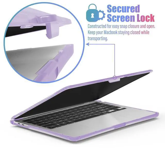 Screen Lock: With its hard outer shell, soft impact resistant rubber bumpers, bottom skid pads, and screen lock, our unique protective case design is meant to provide 360 degrees of protection for your laptop from everyday drops, knocks and shock.