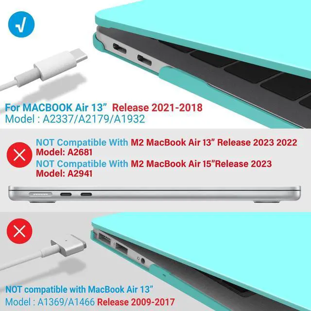 • Incompatible Models: Please note that this case does not fit the 2022 M2 MacBook Air 13 Inch; Model: A2681 and Older MacBook Air 13 Released BEFORE 2018; Models: A1466/A1369. Make sure to check the model number at the bottom of your laptop A****.