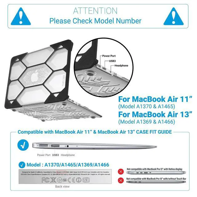 Tough Honeycomb Design Compatible with Macbook Air 11 Inch Case - iBenzers Hexpact protective case is dual-layer full-body rugged and built to withstand the heaviest of drops. Made out of TPU and polycarbonate, it dissipates the impact of the fall throughout its honeycomb body to lessen the impact on your laptop. ^^ Unhindered Access For Macbook Air 11 - Compatible with Macbook Air 11 Inch - hard case design comes with cut-out sections for easy access to all ports, battery check button, Type C, charging ports etc. You can even plug your charger, cable or headset without removing the case.