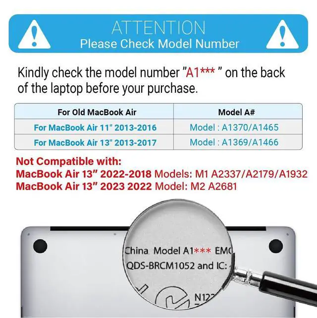 Check Your Model: This case is specifically designed for the Older Version MacBook Air 13 inch released in 2017 2016 2015 2014 2013 2012;