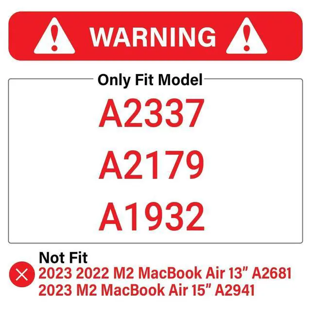Check Your Model: This case is specifically designed for the MacBook Air 13 inch 2022 2021 2020 2019 2018 Release with Touch ID;