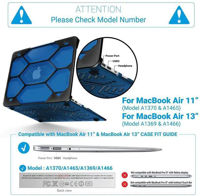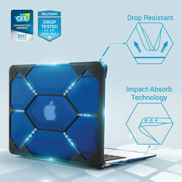 Compatibility - For MacBook Air 13 inch NO Touch ID Release 2017 / 2016 / 2015 / 2014 / 2013 / 2012 - MQD32LL/A, MQD42LL/A, MMGF2LL/A, MMGG2LL/A, MJVE2LL/A, MJVG2LL/A, MD760LL/B, MD760LL/A, MD761LL/A, MD231LL/A, MD232LL/A, MC503LL/A, MC504LL/A, MC965LL/A, MC966LL/A Warning - This case is NOT compatible with 2018 MacBook Air 13 inch with Retina Display and Touch ID MREE2LL/A, MREC2LL/A, MRE82LL/A, MREA2LL/A, MREF2LL/A, MRE92LL/A ^^ Tough Honeycomb Design Compatible with Macbook Air 13 Inch Case - iBenzers Hexpact protective case is dual-layer full-body rugged and built to withstand the heaviest of drops.