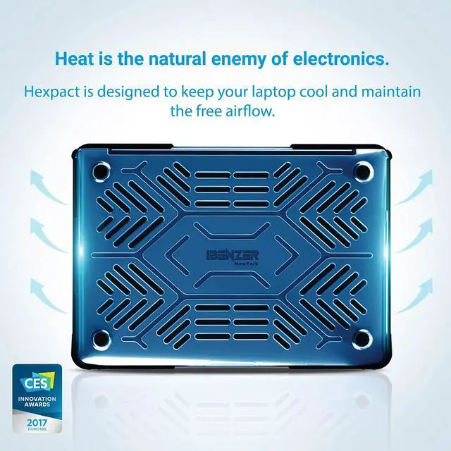 Made out of TPU and polycarbonate, it dissipates the impact of the fall throughout its honeycomb body to lessen the impact on your laptop. ^^ Unhindered Access For Macbook Air 13 - The carrying Macbook Air 13 Inch Case - hard case design comes with cut-out sections for easy access to all ports, battery check button, Type C, charging ports etc. You can even plug your charger, cable or headset without removing the case. ^^ Fully Vented - The iBenzers Hexpact protective case for Macbook Air 13 has cut out vents that facilitates better heat disbursement.