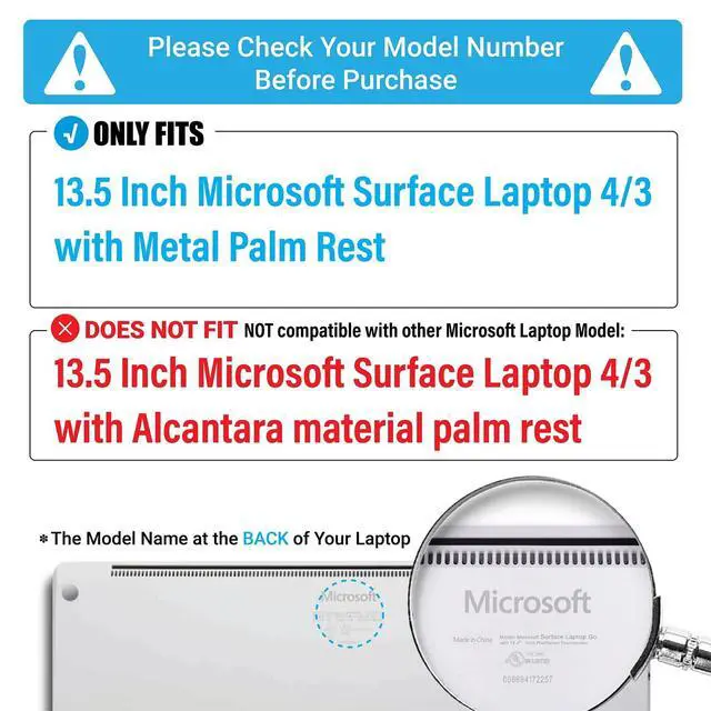 Check your Model: This heavy duty case is specifically designed for Microsoft Surface Laptop 5/4/3 13.5 inch released in 2022, 2021, 2019 with Metal Keyboard (Models: 1951/1868). Please kindly check the model number at the bottom of your laptop before purchase.