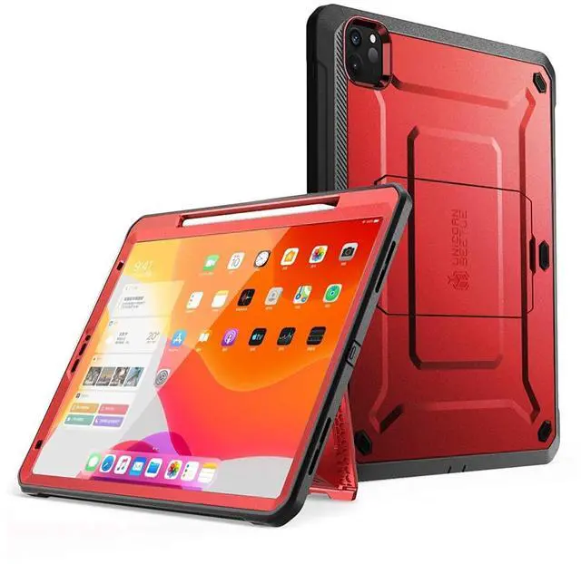 The SUPCASE Unicorn Beetle Pro for the Apple iPad pro 12.9 inch 2020 offers dual layer protection and convenience without compromising on looks or style. Shock-resistant Thermoplastic Polyurethane (TPU) and solid Polycarbonate provide both cushion during accidental drops and a hard barrier to keep away scratches and damage. All phone ports are covered to block dust and debris and a built-in screen protector defends your screen without hindering its display or touch sensitivity. This case is designed to withstand heavy use and demanding conditions. Trust SUPCASE Unicorn Beetle PRO to protect your tablet while working, traveling or during outdoor activities.