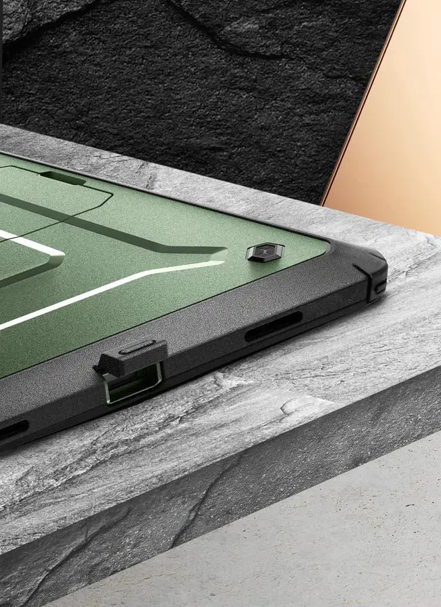 Model: SM-X200 / SM-X205/ SM-X207 ^^ Built-in screen protector and class-leading drop protection and raised edges to protect screen and camera. ^^ Functional pop out kickstand allows easy access to your favorite shows, movies, and games while on the go. ^^ Easy access to ports and functions while port covers keep out dust and debris. ^^ Unique corner protective and shock-absorbing design protects against extreme shock and impact forces.