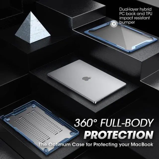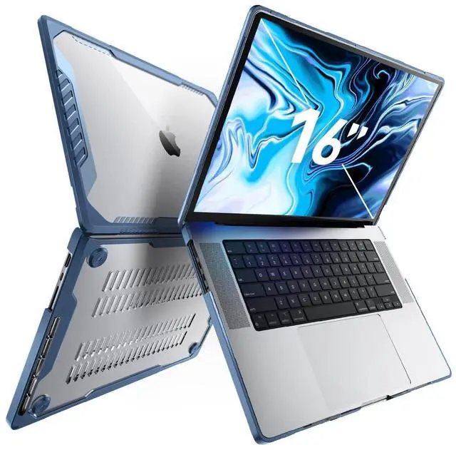 Featuring a unique shock-absorbing wraparound bumper for maximum protection from drops and falls. ^^ The transparent case cover keeps your MacBook Apple logo visible. ^^ Precise cutouts and design ensure easy access to all ports, sensors, speakers, cameras, and features. ^^ The bottom case corners feature raised rubber feet for improved heat dissipation. ^^ Designed for Apple MacBook Pro 16 inch M5 / M4 / M3 / M2 / M1 Pro / Max Chip 2026-2021 Release. (