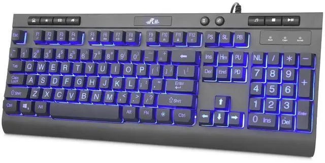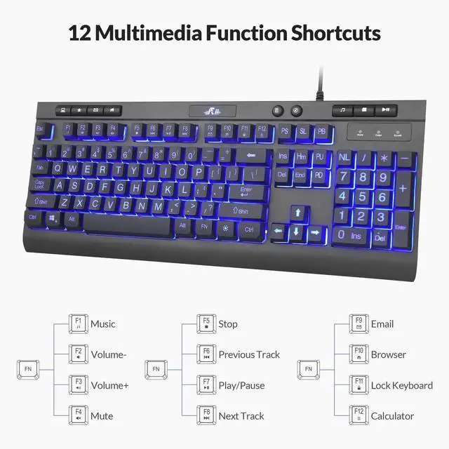 Full-size and ergonomic design: This full-size keyboard has 113 keys, including a numeric keypad and multifunction media keys. The foldable stand on the back of the keyboard is ergonomically designed to reduce wrist fatigue after prolonged use ^^ Plug and