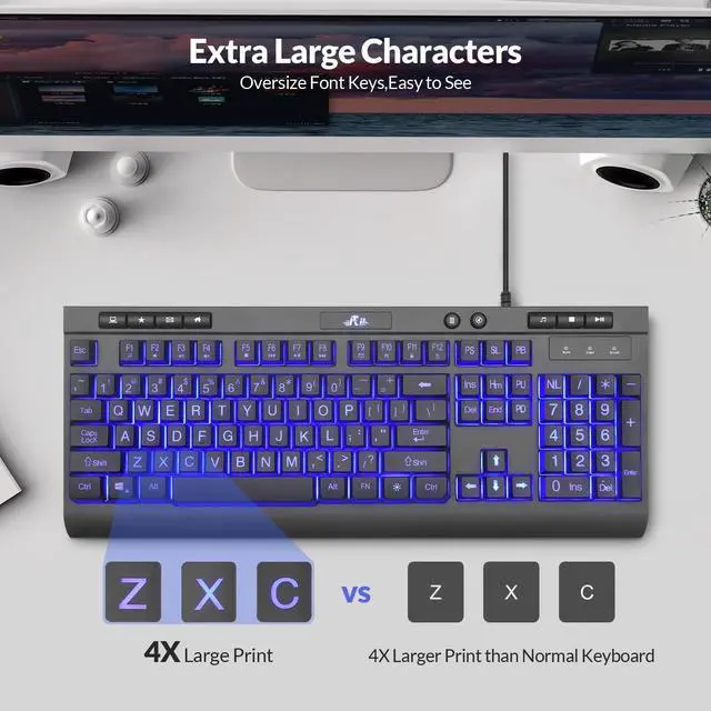 Large Print Keyboard: 4X larger than standard keyboard fonts, clearly visible, helping you type with ease. This keyboard is the perfect choice for seniors, students, office workers, and people with visual impairments ^^ Blue